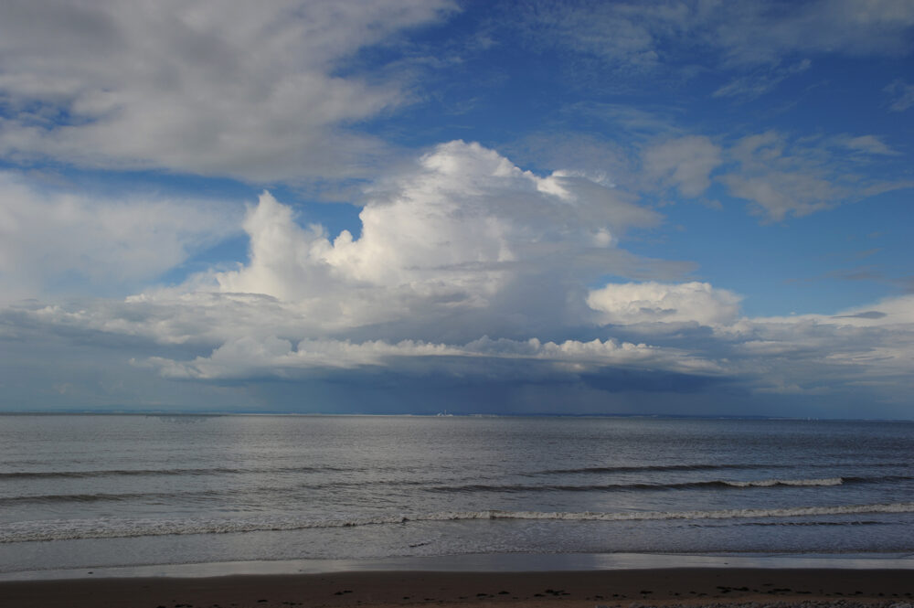 A storm system spotted over South Wales, from Blue Anchor Beach, Somerset, England
