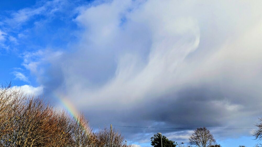 A rainbow beneath the storm, spotted over Blairgowrie, Perthshire, Scotland