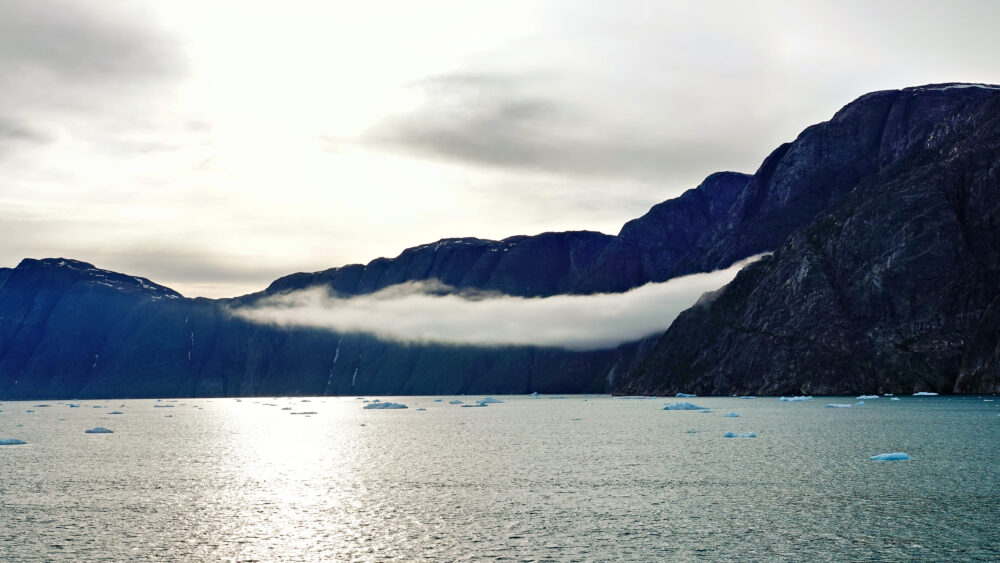 Stratus that Steven observed as appearing to be a nice, soft, inviting hammock draped between the shore cliffs, spotted in Southwest Greenland