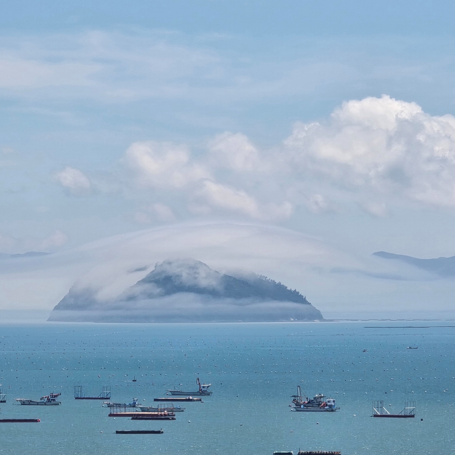 A magical mist-veiled island appeared to Dae-Am Yi (Member 64,103) in Wando-gun, Jeollanam-do, South Korea. Its forested peak was wrapped in Stratocumulus lenticularis, also known as a cap cloud since it is forming directly over the island peak. This is a stationary lens-shaped cloud caused by moist air cooling as it flows up and over raised ground like this. Shreds of Stratus fractus clothed the island’s wooded slopes, while its steep shores were ringed with a fine layer of advection mist condensing as the warm, moist low air flowed across the cooler sea surface. In the sky above, puffs of Cumulus mediocris built on gently rising air currents. Does science dispel the magic? We hope not. We like to think it adds to the mist-ery.